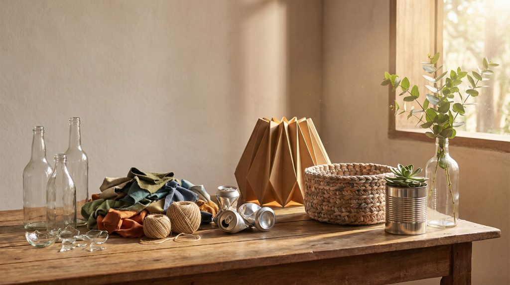A matéria-prima para o artesanato sustentável está, literalmente, em toda parte. O segredo reside em identificar quais materiais possuem durabilidade e estrutura suficientes para serem transformados. Vidros de conserva, caixas de papelão, latas de alumínio e sobras de tecido são os campeões de disponibilidade e versatilidade.