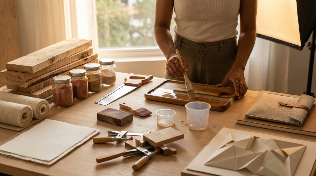 Este guia foi elaborado para ser a sua referência definitiva. Aqui, não abordaremos apenas como colar ou cortar materiais, mas sim como pensar como um criador. Exploraremos desde a preparação do ambiente e escolha de ferramentas até técnicas específicas para materiais como feltro, madeira, resina e papel. Se você busca transformar matérias-primas simples em objetos de desejo, ou até mesmo encontrar uma nova fonte de renda, este conteúdo é para você.