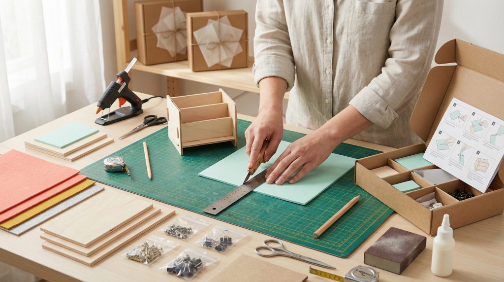 Este guia prático foca em criar kits DIY para iniciantes com materiais como madeira, EVA e cartonagem, apresentando planejamento, lista de itens, passo a passo detalhado e estratégias de venda. Você aprenderá a adaptar projetos quando faltar material, a medir e cortar com precisão e a melhorar acabamento para produtos vendáveis. O objetivo é oferecer procedimentos claros, exemplos reais e dicas de montagem que transformam uma ideia artesanal em peça finalizada pronta para presentear ou vender.
